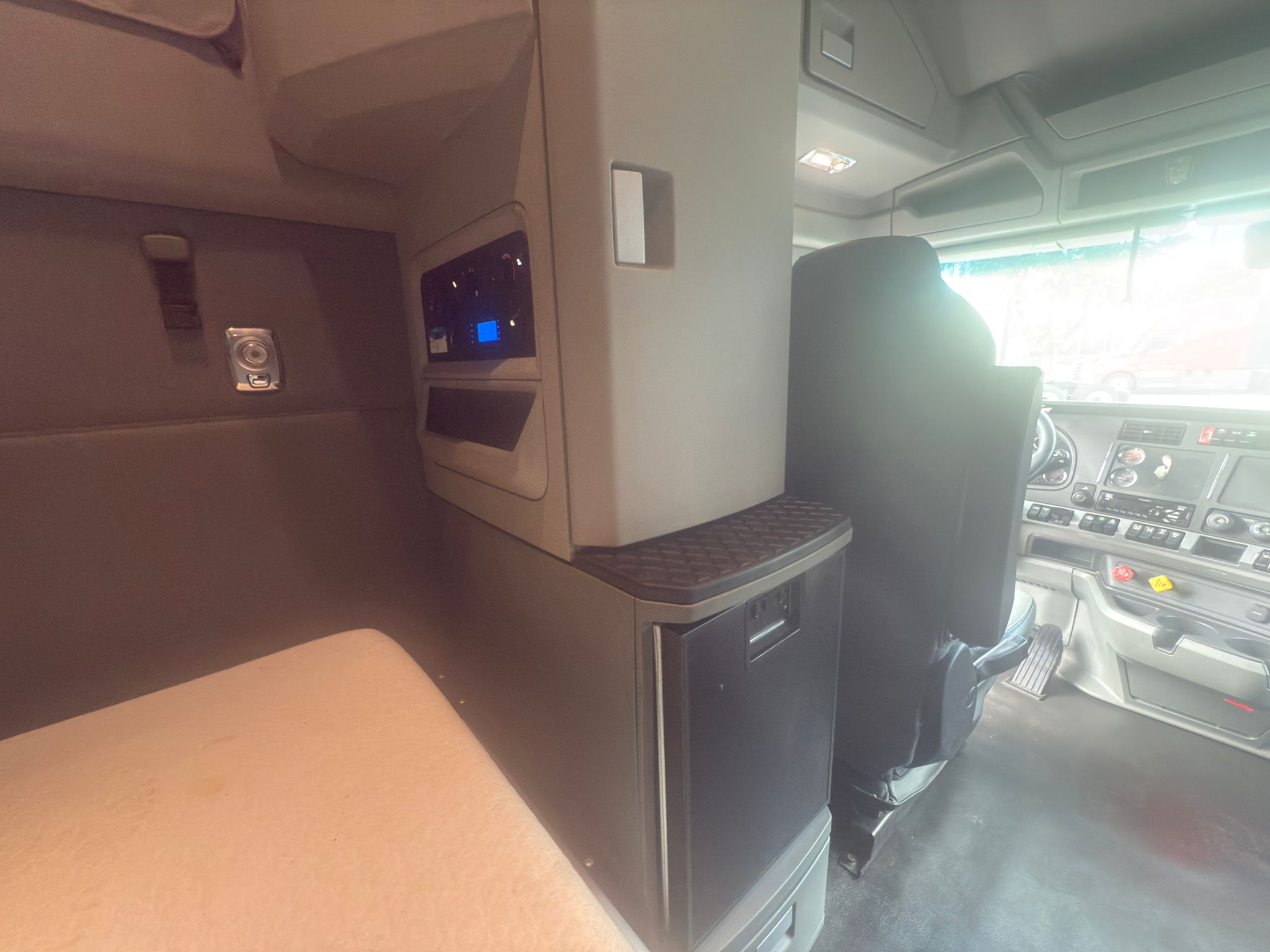 - Sleeper Cab: A spacious 76-inch high-roof sleeper built for comfort on the road. The interior is fully appointed with a full-size lower bunk, an upper bunk, integrated climate controls, a factory-installed refrigerator, and ample cabinet storage.